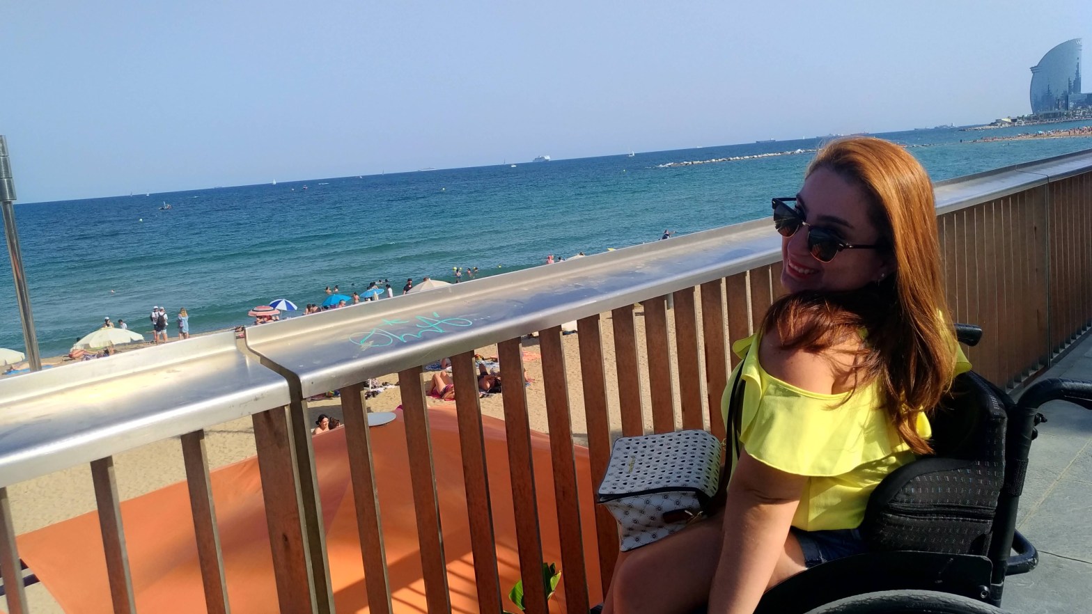 Ficamos em um apartamento em San Adriá de Bésos, uma cidade satélite de Barcelona, no máximo 20 min do centro da cidade. Alugamos um apartamento de 3 quartos com 1 suíte para nosso grupo de 6 pessoas. O apartamento não era especialmente adaptado para cadeirantes, mas é possível se virar bem no banheiro com ducha, utilizando uma cadeira normal que coube no box para tomar banho. O apartamento é uma cobertura com vista para o mar.